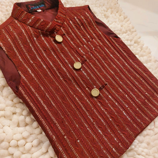Maroon Sequence Embroidered Waistcoat with Kurta Trouser