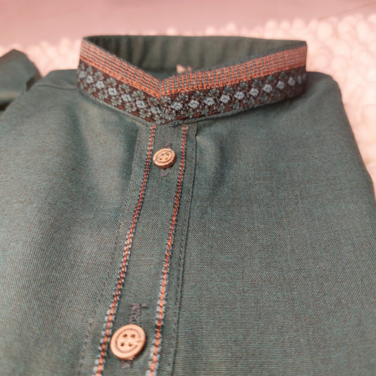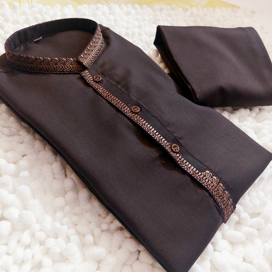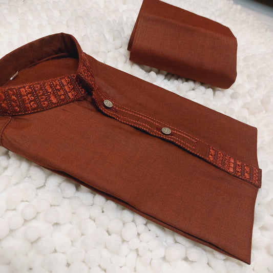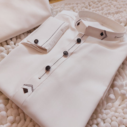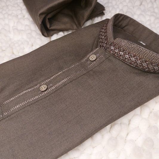 White and Brown Threadwork Designing Kurta and Trouser 0019
