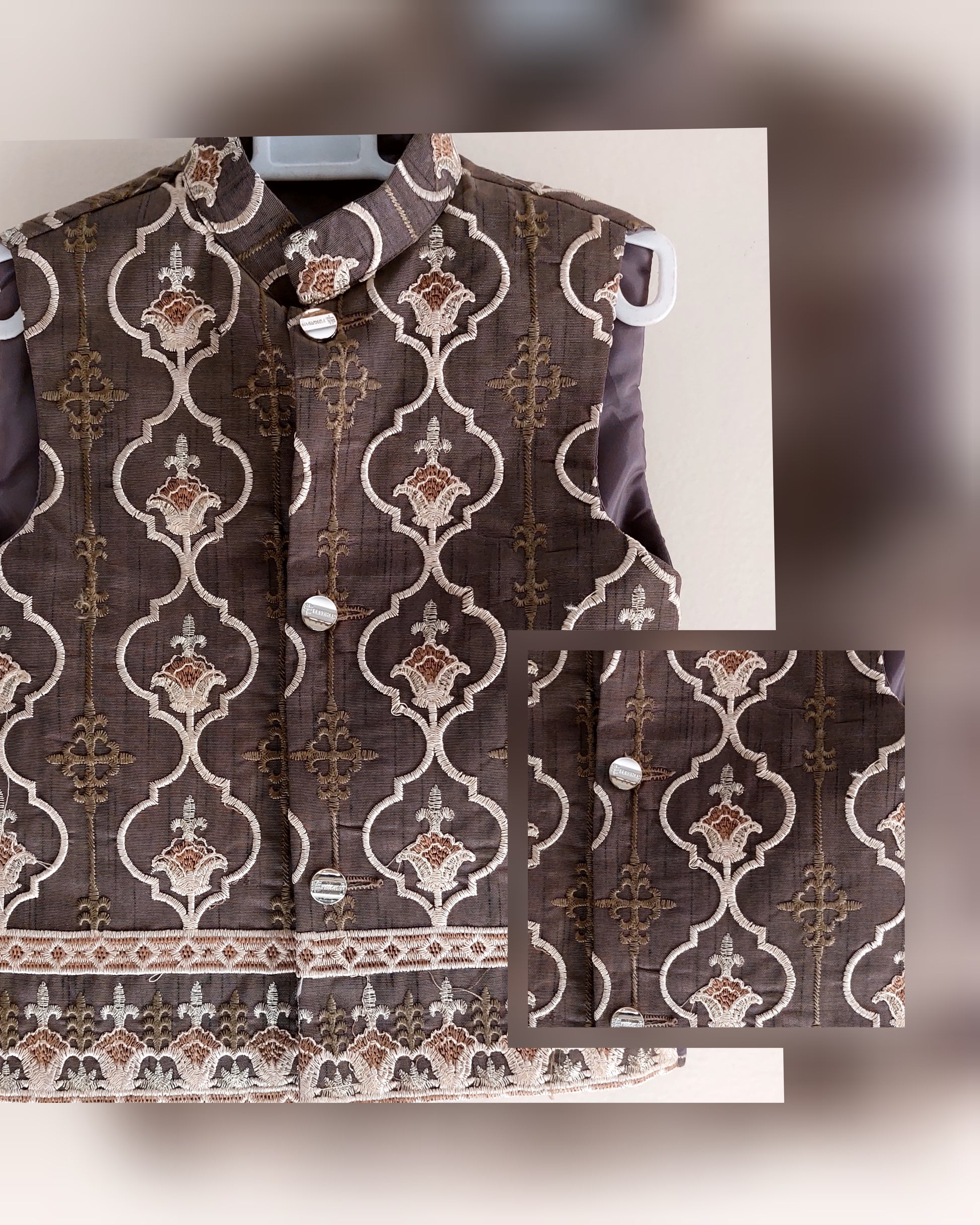 Enhance your child's style with our Brown Embroidered Waistcoat, designed specifically for 3 and 4-year-olds.