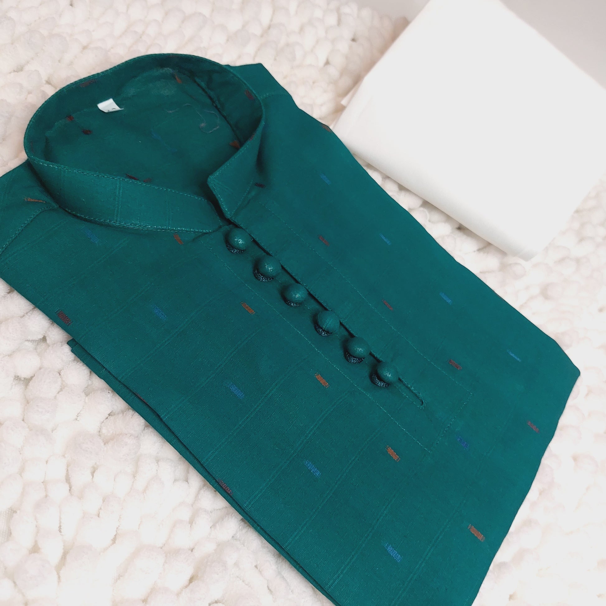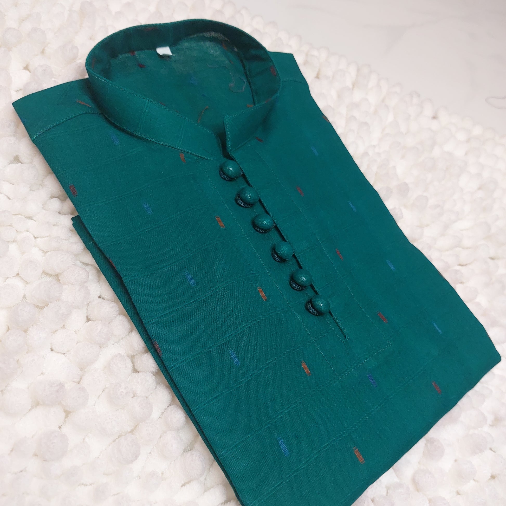 This garment is crafted from premium cotton fabric and features stylish loops and buttons. It also includes convenient side pockets for added functionality.