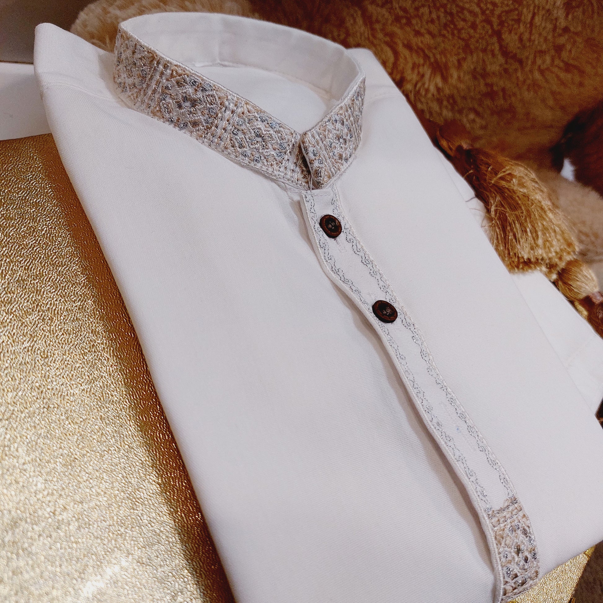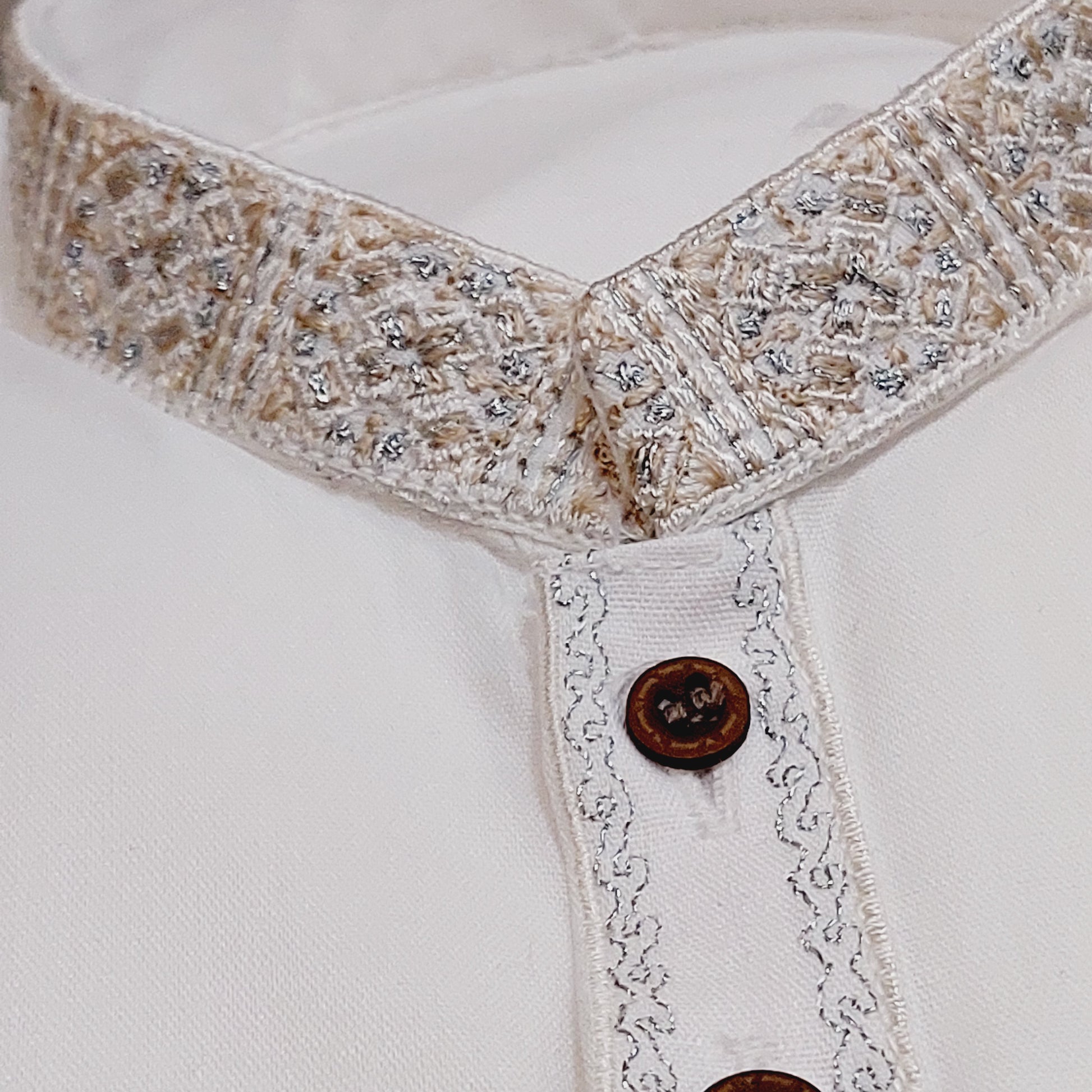 Embroidered Blended Cotton OffWhite Kameez and Trouser