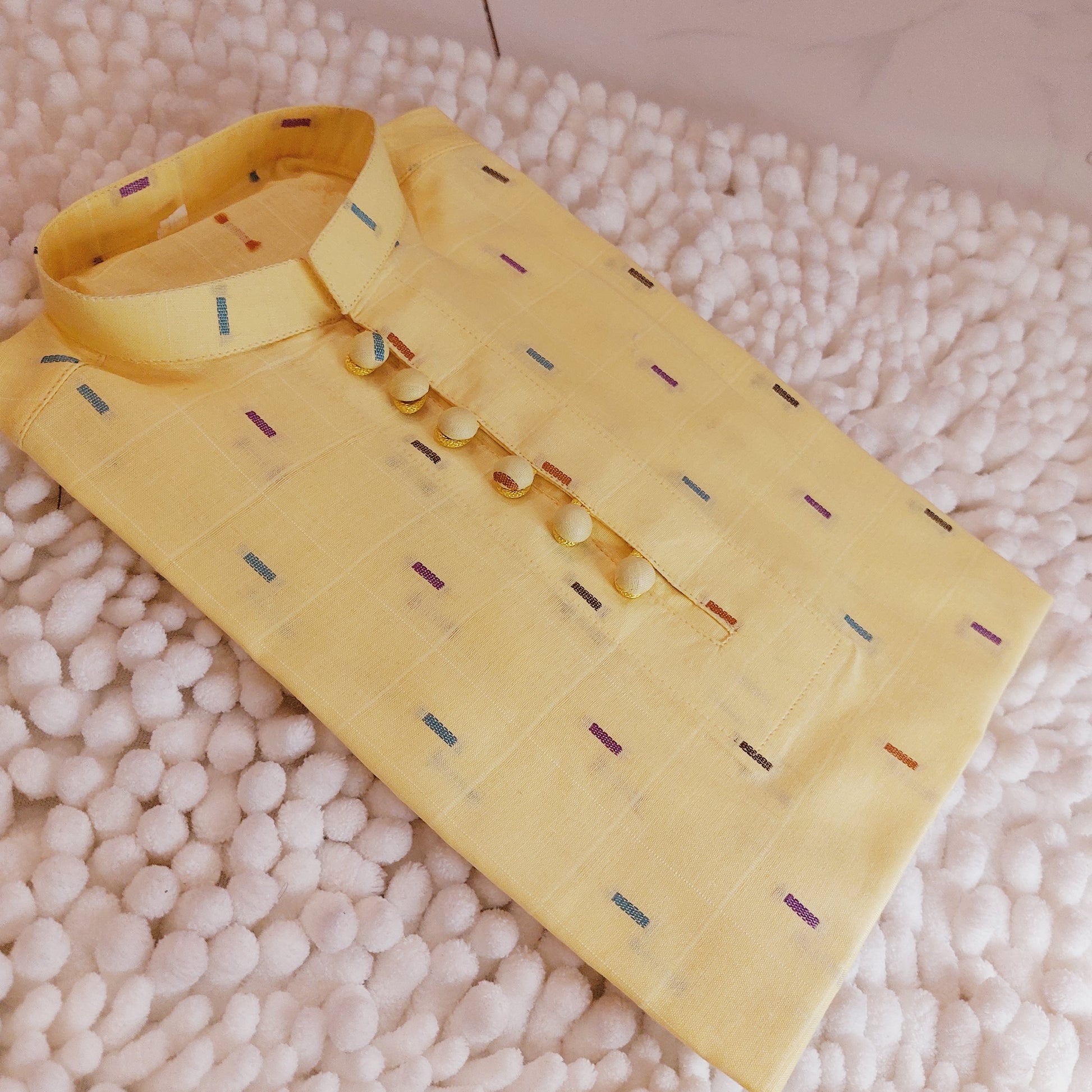 This garment is crafted from premium cotton fabric and features stylish loops and buttons. It also includes convenient side pockets for added functionality.