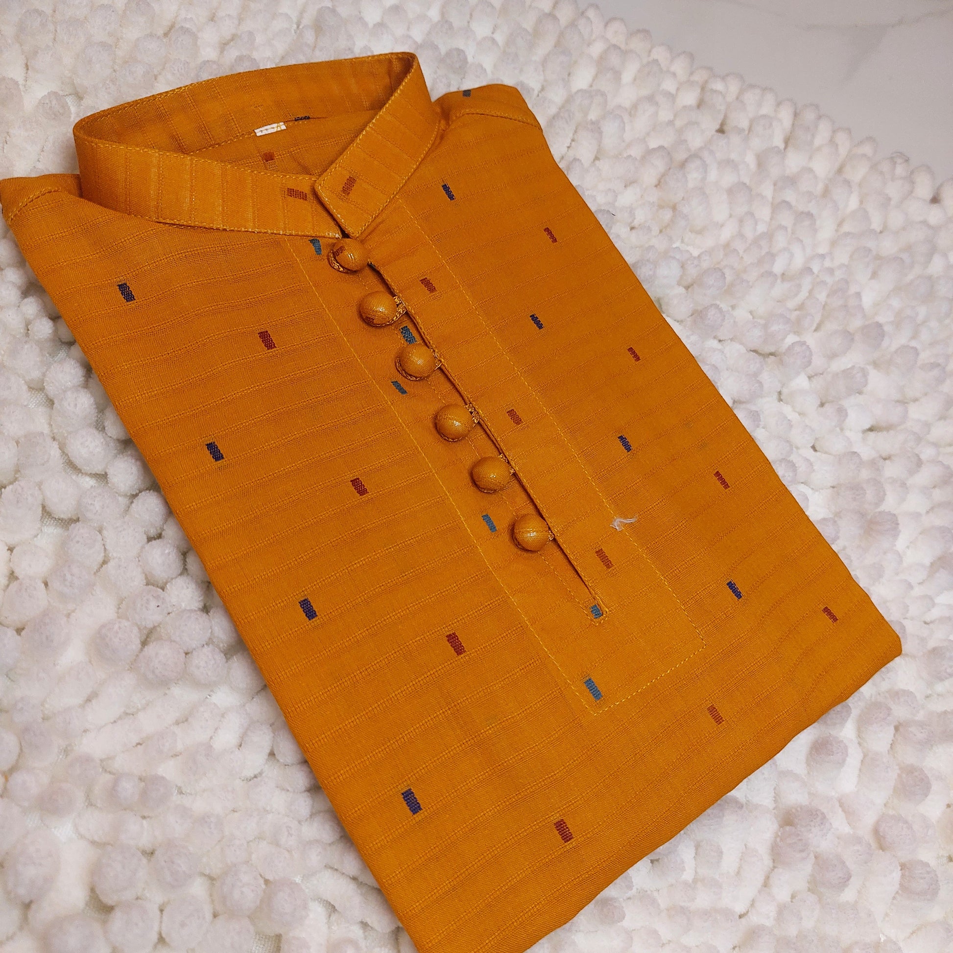 This garment is crafted from premium cotton fabric and features stylish loops and buttons. It also includes convenient side pockets for added functionality.