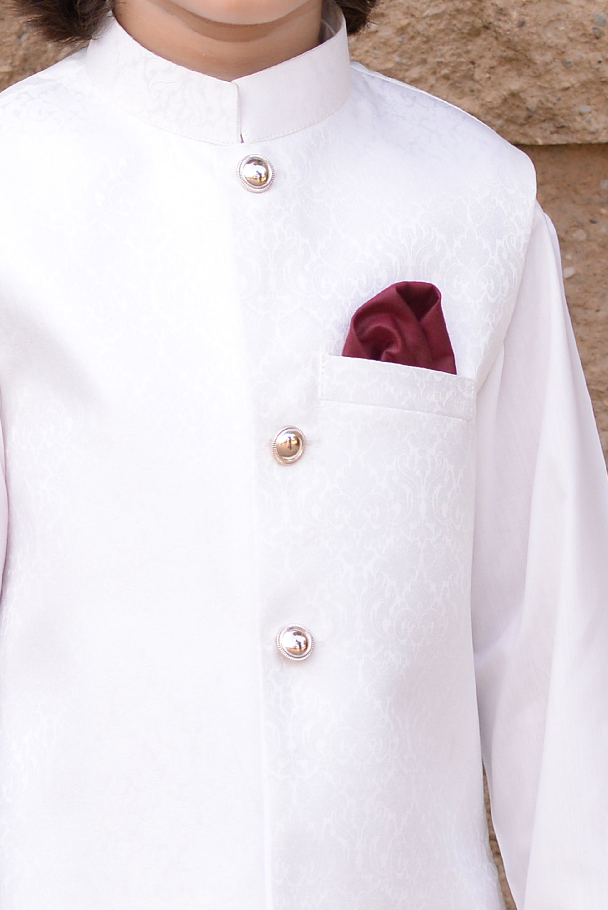 Details: An elegant hand-crafted Jamawar atlas waistcoat is expertly printed for a unique look with formal buttons.