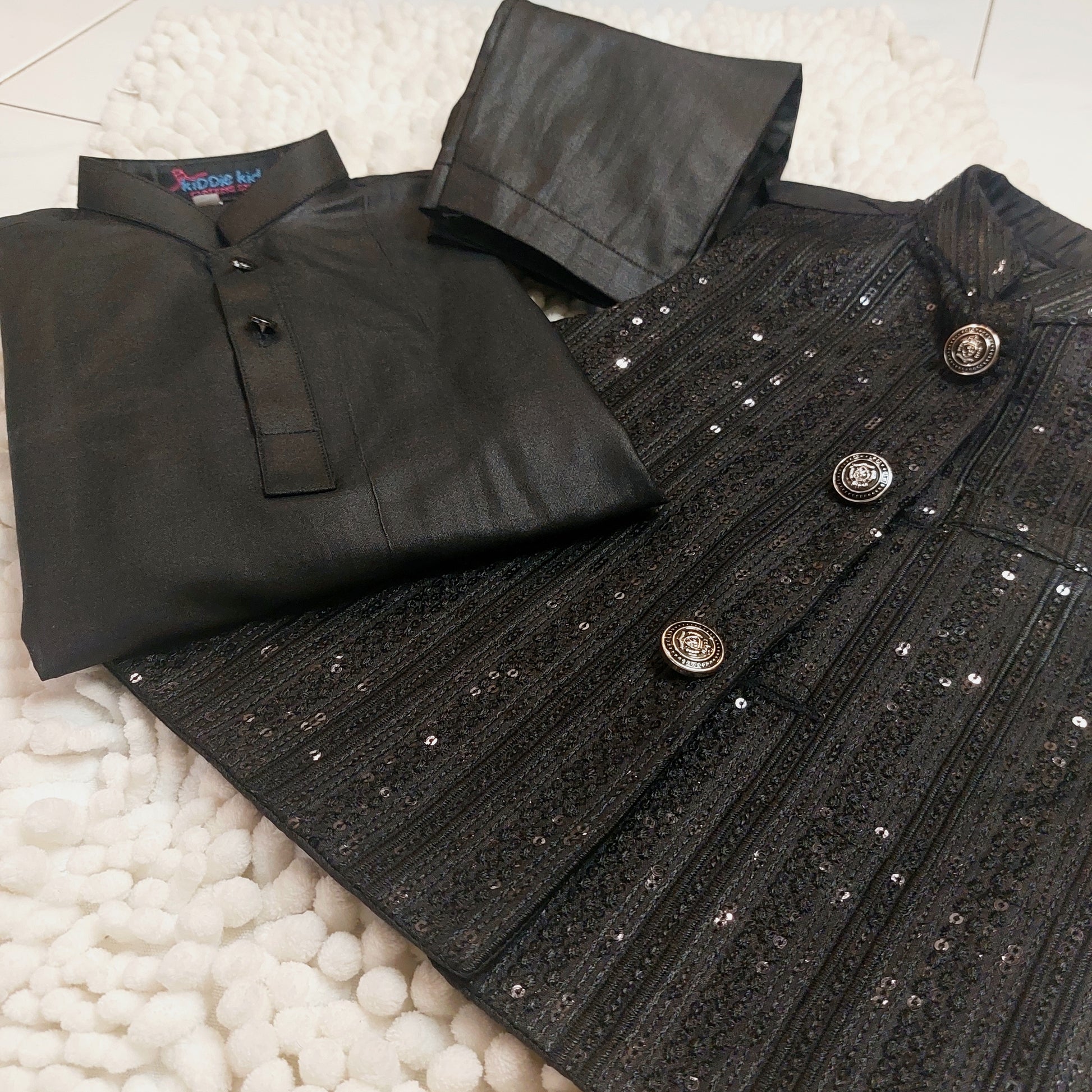 Black Sequence Embroidered Waistcoat with Kurta Trouser