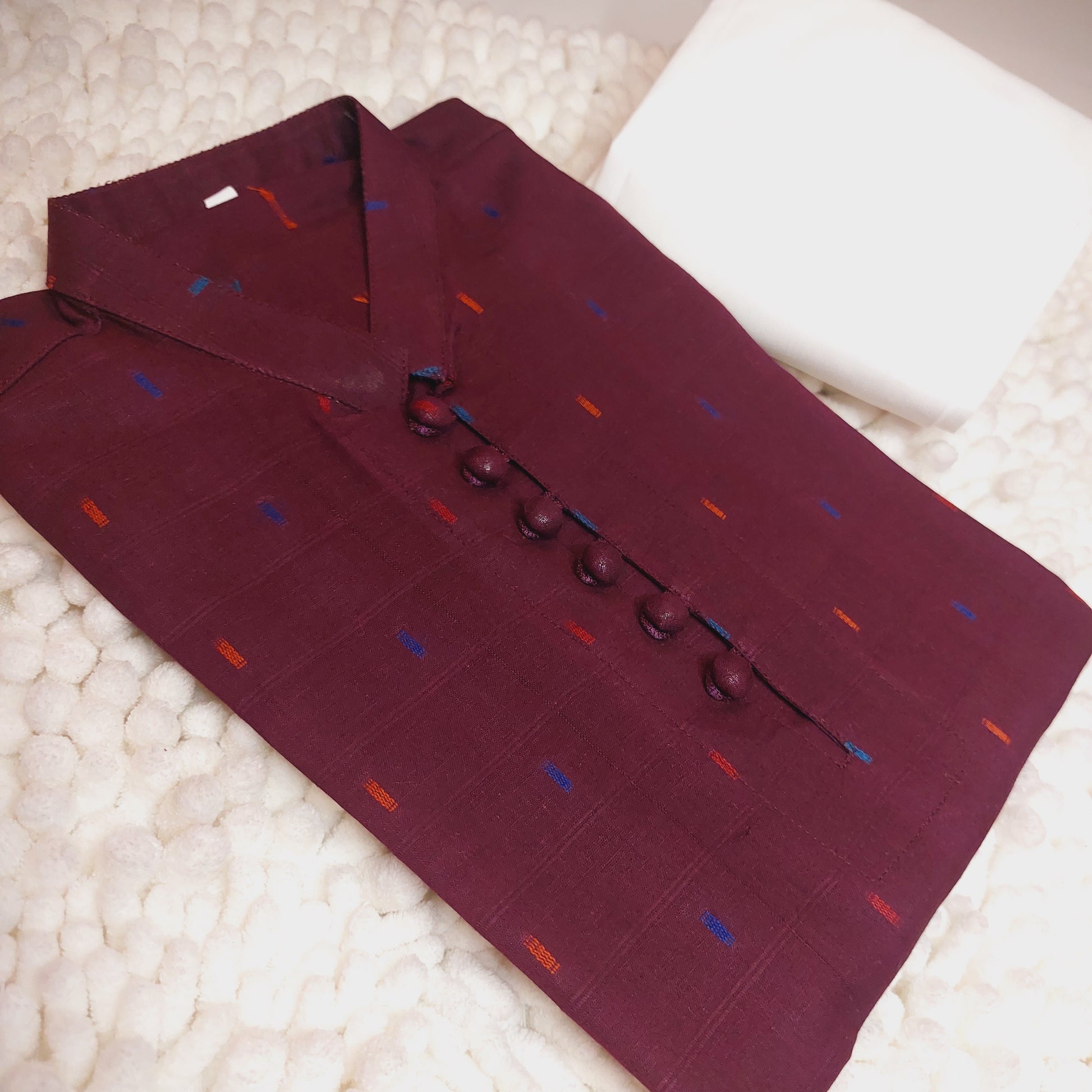 This garment is crafted from premium cotton fabric and features stylish loops and buttons. It also includes convenient side pockets for added functionality.