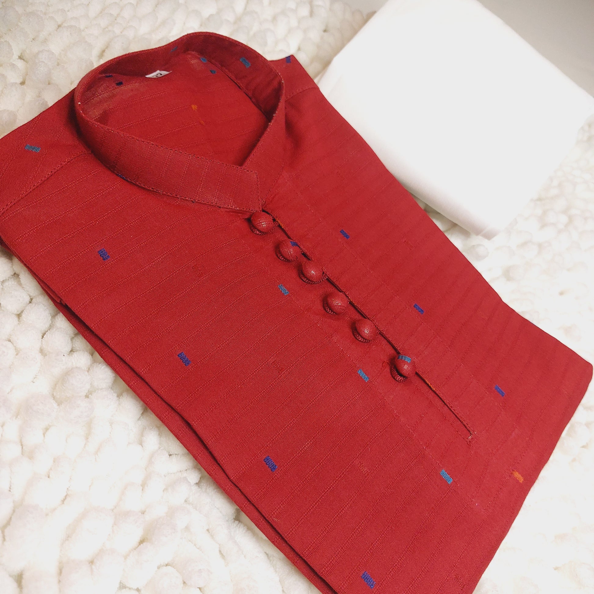 This garment is crafted from premium cotton fabric and features stylish loops and buttons. It also includes convenient side pockets for added functionality.