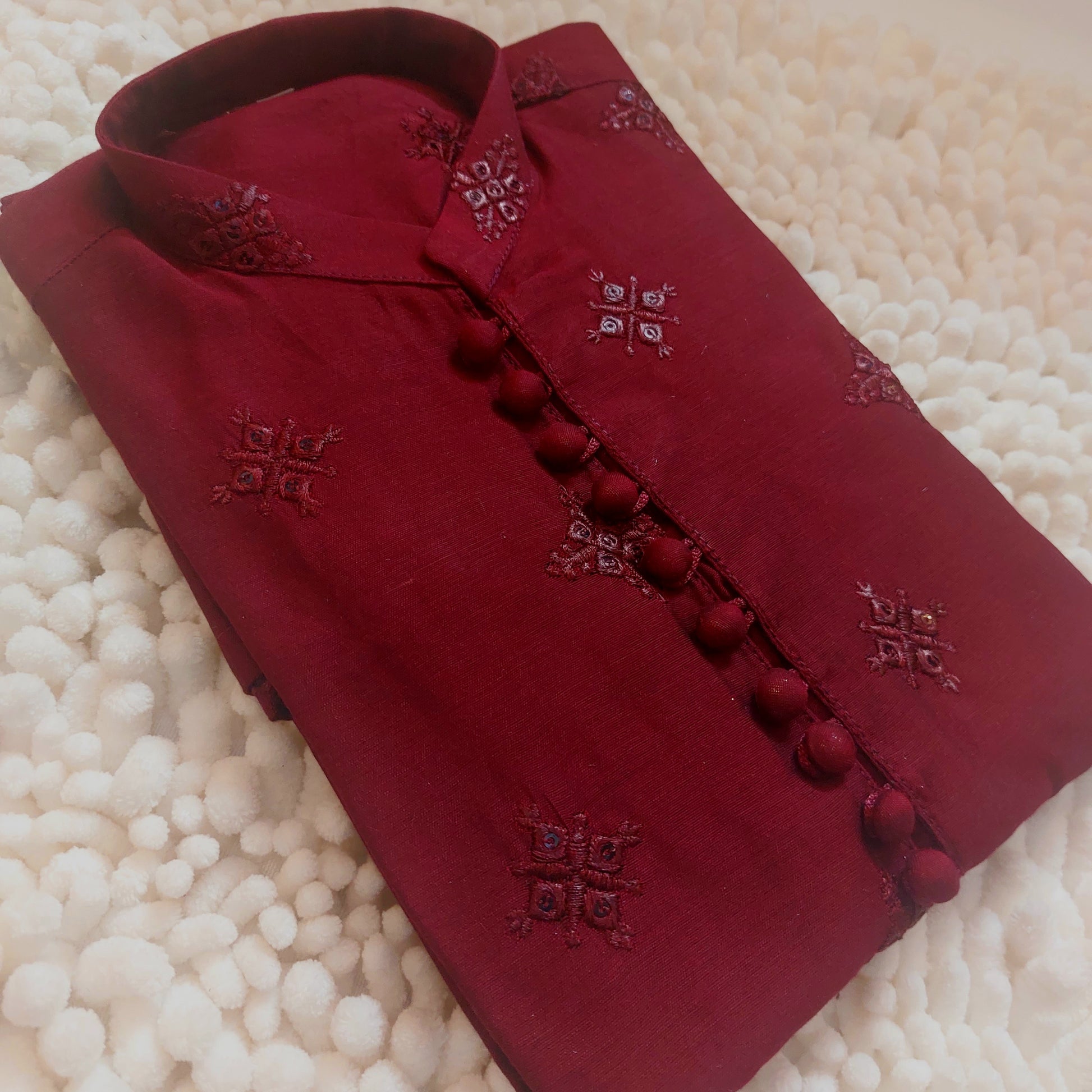 Expertly crafted from high-quality fabric, this Kurta is the perfect choice for any formal occasion. Its impeccable stitching and design, paired with the trendy looped detailing, make it a must-have for your wardrobe. Elevate your style game with this elegant and sophisticated kurta.