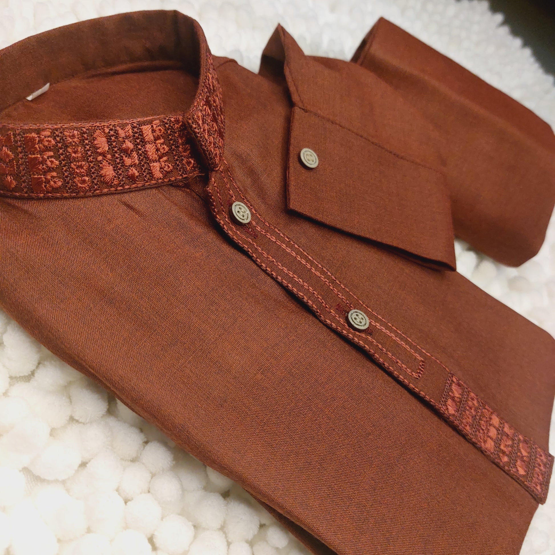 The kurta and trouser is the same vibrant color, creating a seamless and stylish look. Perfect for any occasion, this ensemble effortlessly combines traditional and modern designs for a truly unique and eye-catching outfit.