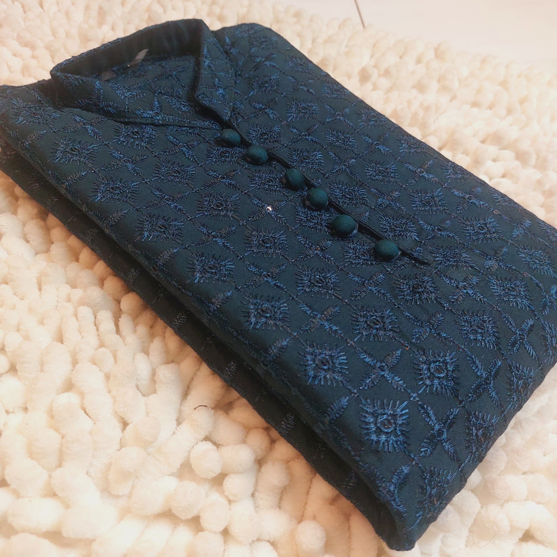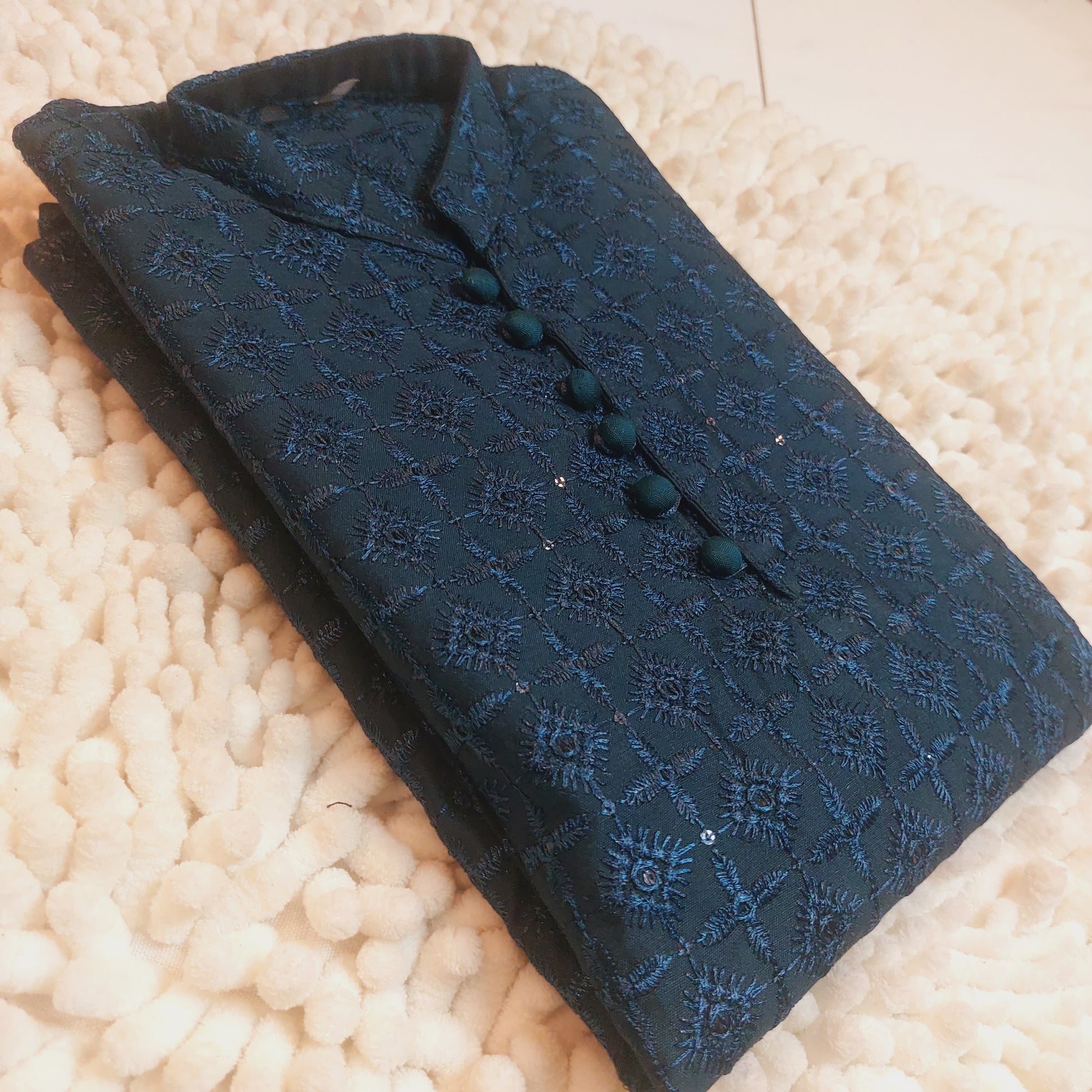 Expertly crafted from high-quality fabric, this Kurta is the perfect choice for any formal occasion. Its impeccable stitching and design, paired with the trendy looped detailing, make it a must-have for your wardrobe. Elevate your style game with this elegant and sophisticated kurta.